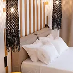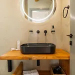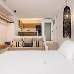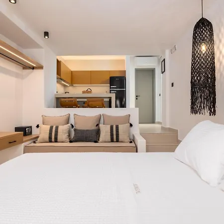 Die 1-Zimmer- Sunsal Luxury Studios - Sky verfügt über eine Terrasse mit Blick auf den Garten und ist 27 Autominuten vom Flughafen Paros entfernt gelegen.